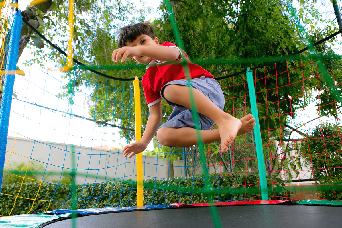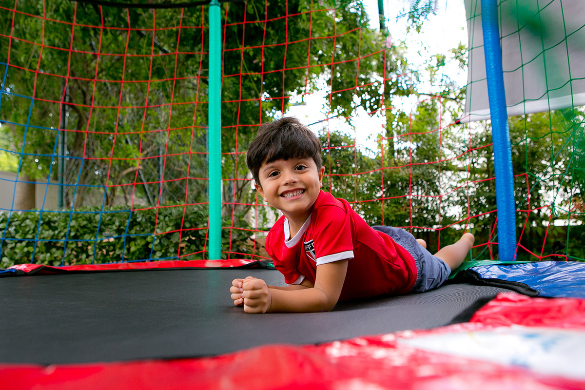 Brincadeiras a parte foi onde ele mais se divertiu, pulou sozinho, pulou com os primos, amigos, fez campeonato de quem pulava mais alto foi uma diversão e tanto!